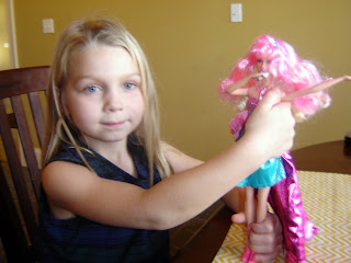 Amelia was delighted with the present we brought her. It is the Pop Star and the Princess Barbie Doll. She comes as a princess and by twisting her hair and dress you can change her into the pop star. She told us several times how much she liked it, but the truth is the last thing she needed was another doll. I guess that we are the ones who needed to give her a present since we don't see her nearly enough.